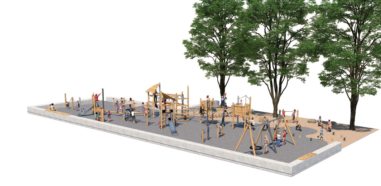 - Er komen speeltoestellen op maat van verschillende leeftijden, zodat iedereen op zijn eigen niveau kan spelen.